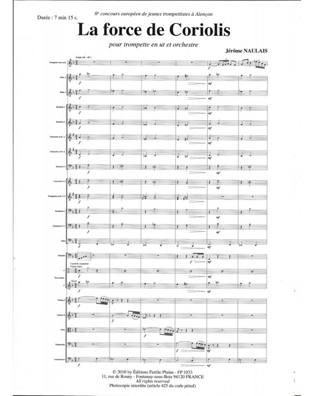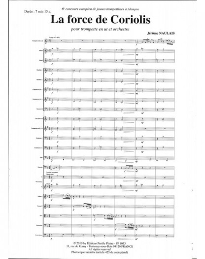 La Force De Coriolis Jérôme Naulais Trumpet and Orchestra Score + Parties