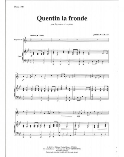 Quentin La Fronde Jérôme Naulais Baritone and Piano Recueil + Partition