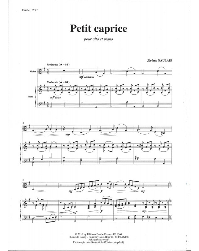 Petit Caprice Jérôme Naulais Alto et Piano Recueil + Partition