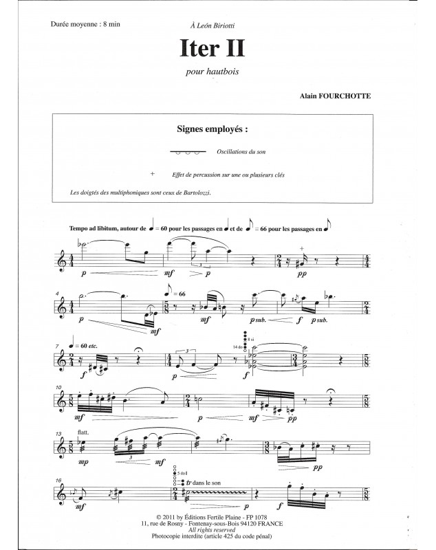 Iter II Alain Fourchotte Oboe Recueil