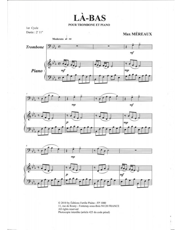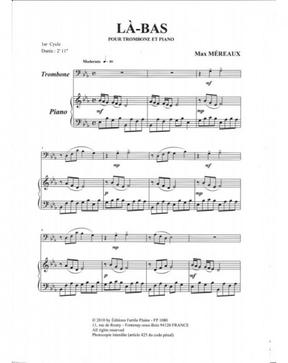 Là-Bas Max Mereaux Trombone et Piano Recueil + Partition