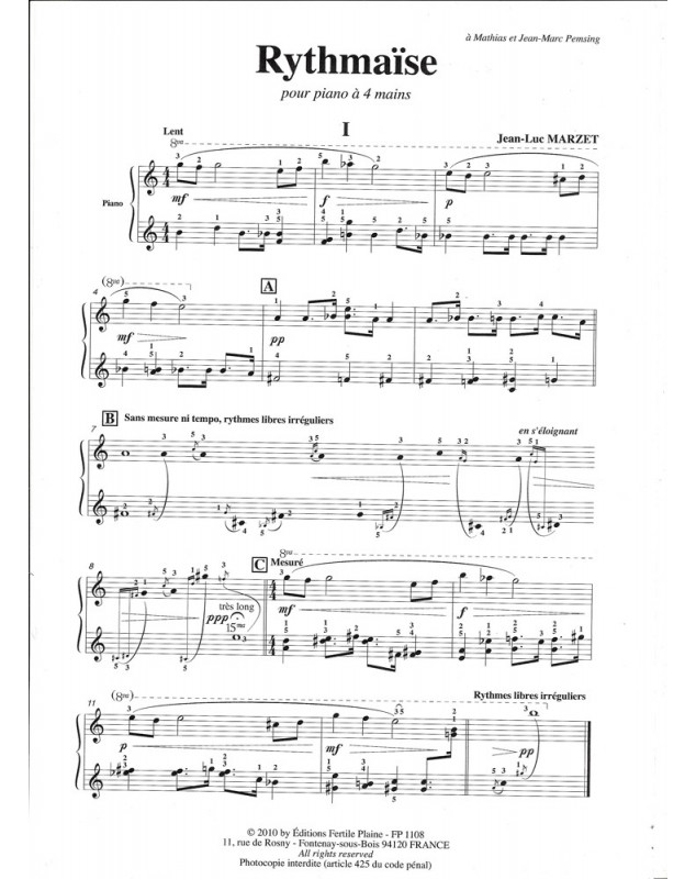 Rythmaïse Jean-Luc Marzet Piano 4 Hands Recueil