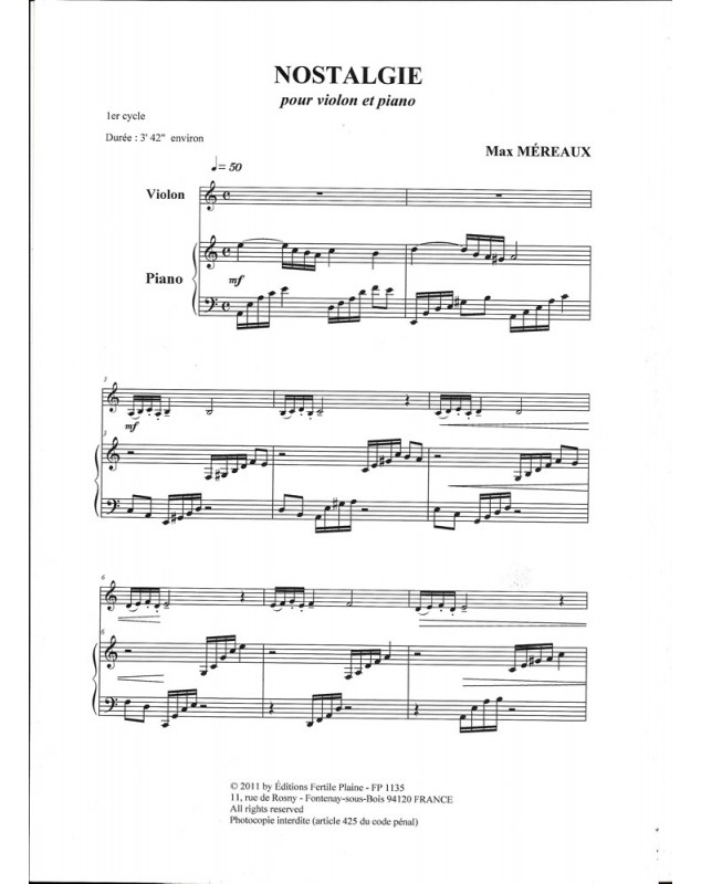 Nostalgie Max Mereaux Violon et Piano Recueil + Partition