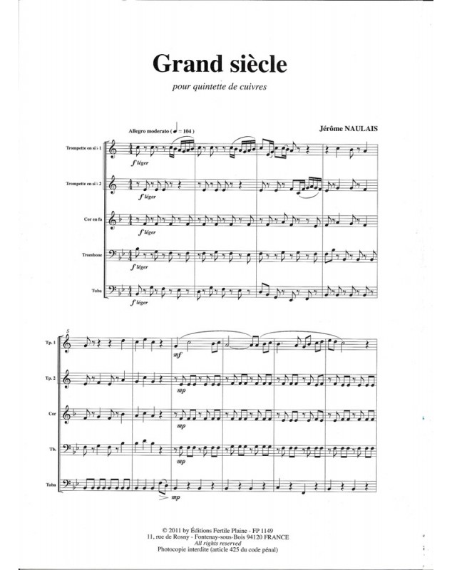 Grand Siècle Jérôme Naulais 2 Trumpets, Horn, Trombone and Tuba Set de partitions
