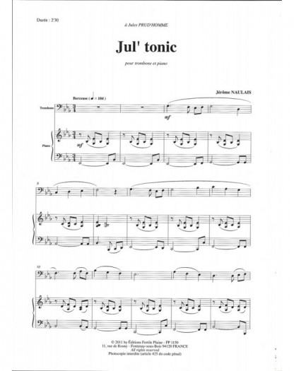 Jul'Tonic Jérôme Naulais Trombone et Piano Recueil + Partition