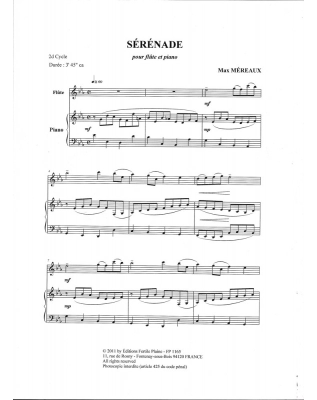 Sérénade Max Mereaux Flûte Traversière et Piano Recueil + Partition