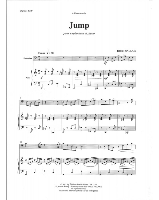 Jump Jérôme Naulais Euphonium et Piano Recueil + Partition