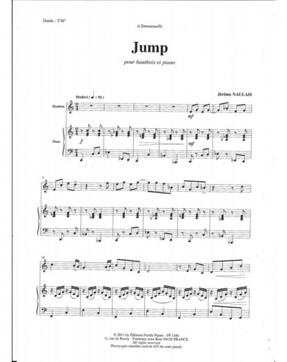 Jump Jérôme Naulais Hautbois et Piano Recueil + Partition