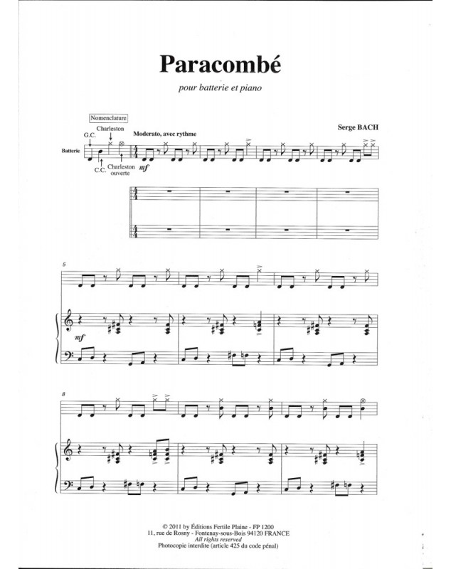 Paracombé Serge Bach Drum Set and Piano Recueil + Partition