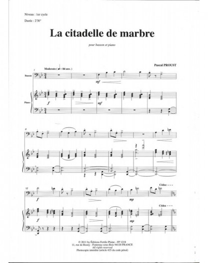 La Citadelle De Marbre Pascal Proust Basson et Piano Recueil + Partition