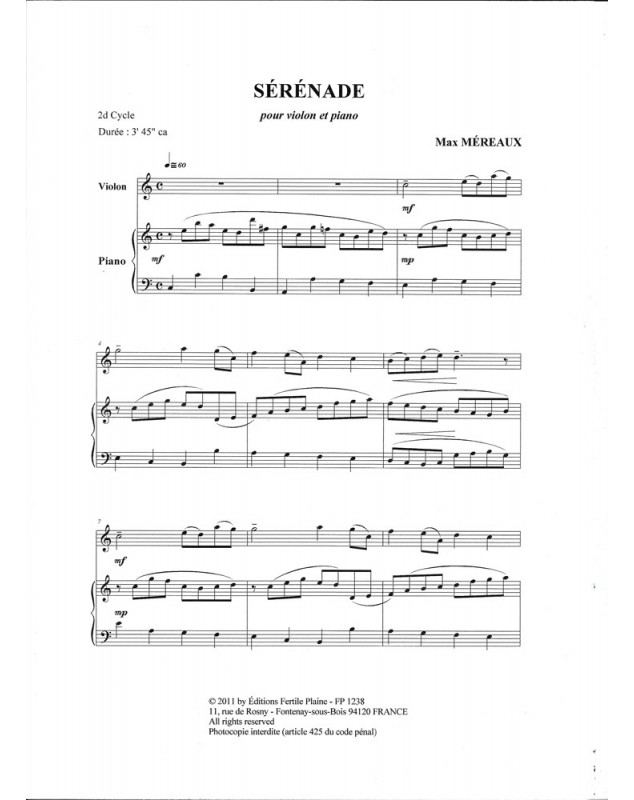 Sérénade Max Mereaux Violon et Piano Recueil + Partition