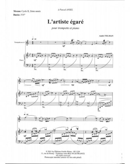 L'artiste Égaré André Telman Trompette et Piano Recueil + Partition