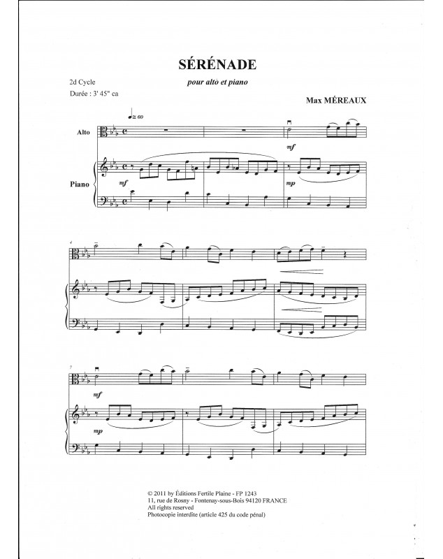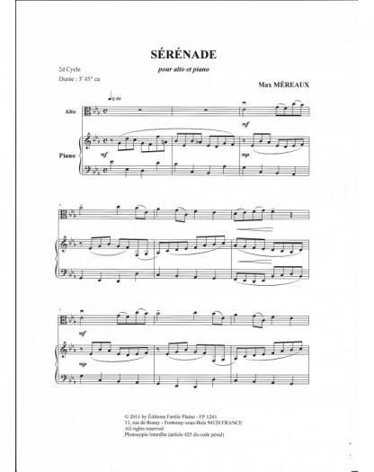 Sérénade Max Mereaux Alto et Piano Recueil + Partition