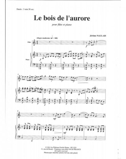 Le Bois De L'aurore Jérôme Naulais Flûte Traversière et Piano Recueil + Partition