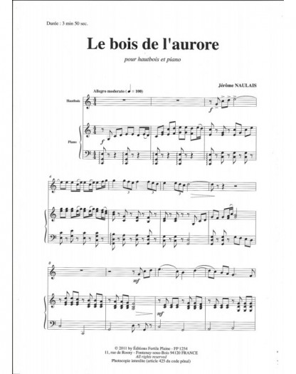 Le Bois De L'aurore Jérôme Naulais Hautbois et Piano Recueil + Partition