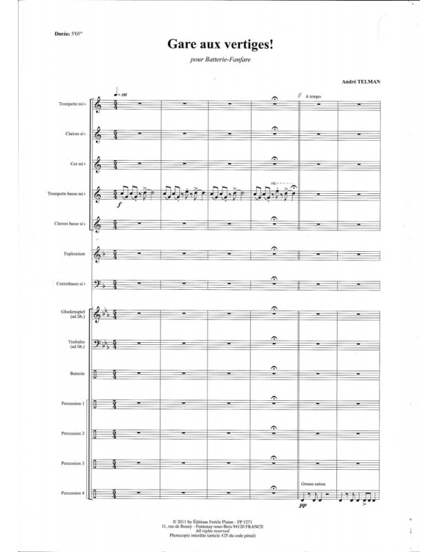 Gare Aux Vertiges André Telman Marching Band Score + Parties