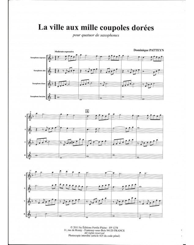La Ville Aux Mille Coupoles Dominique Patteyn Quatuor de Saxophones Set de partitions