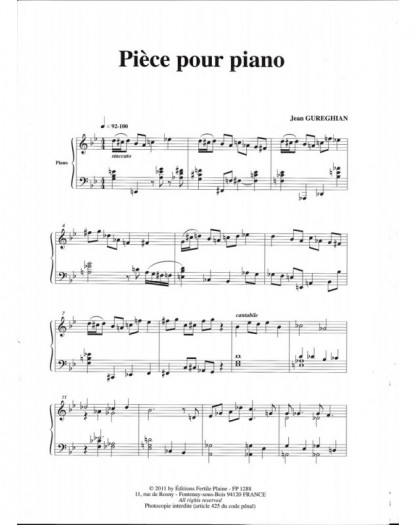 Pièce Pour Piano Jean Gureghian Piano Recueil