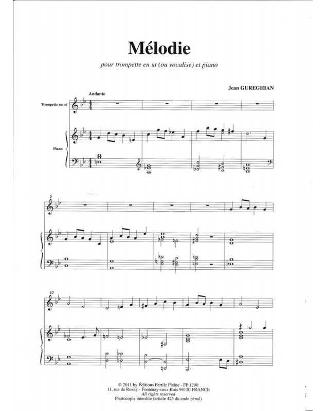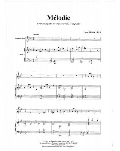 Melodie Jean Gureghian Trompette et Piano Recueil + Partition