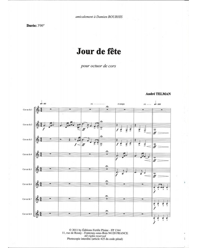 Jour De Fete André Telman 8 Horns Set de partitions