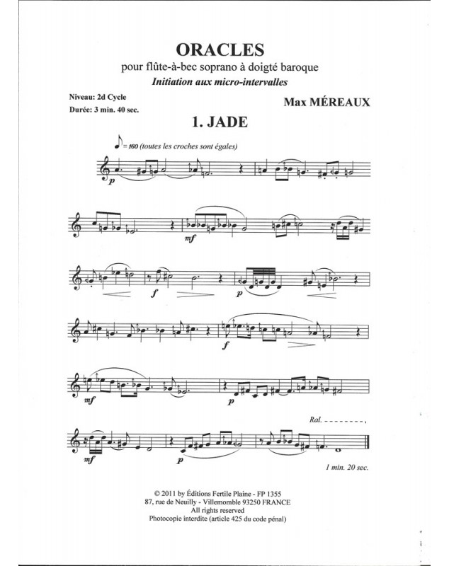 Oracles Max Mereaux Soprano Recorder Recueil