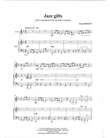 Jazz Gifts Pascal Proust Saxophone et Piano Recueil