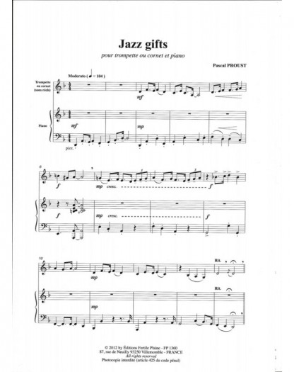 Jazz Gifts Pascal Proust Trompette et Piano Recueil + Partition