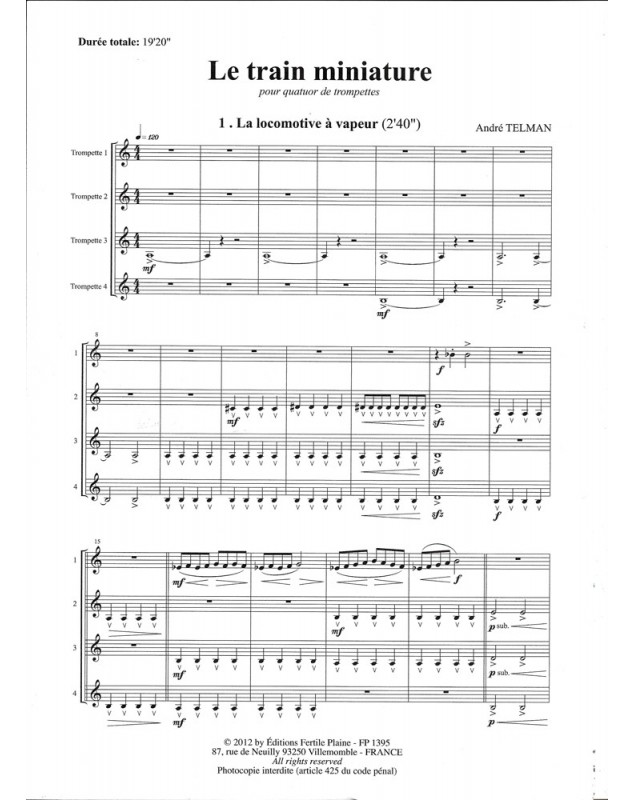 Le Train Miniature André Telman 4 Trompettes Set de partitions