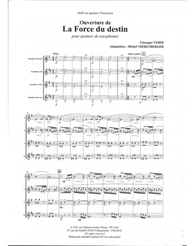 La Force Du Destin Giuseppe Verdi Michel Nierenberger 4 Saxophone's Set de partitions