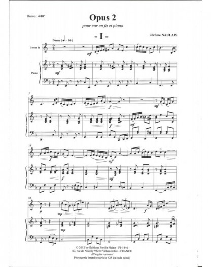 Opus 2 Jérôme Naulais Cor et Piano Recueil + Partition