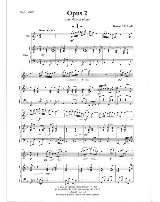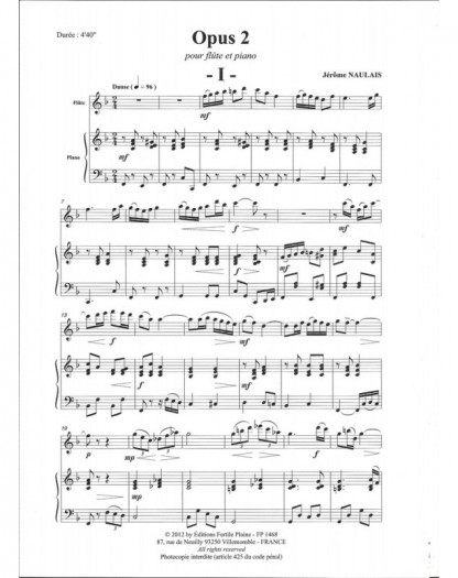Opus 2 Jérôme Naulais Flûte Traversière et Piano Recueil + Partition