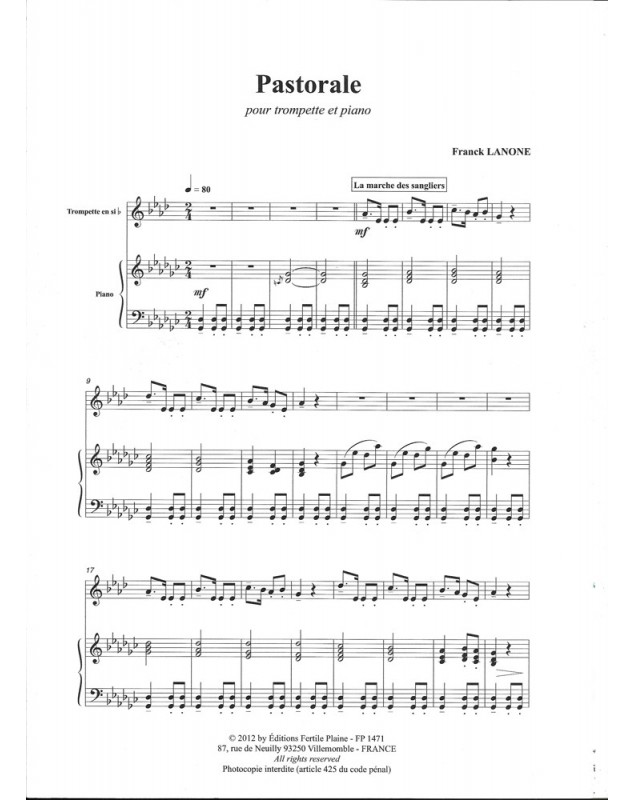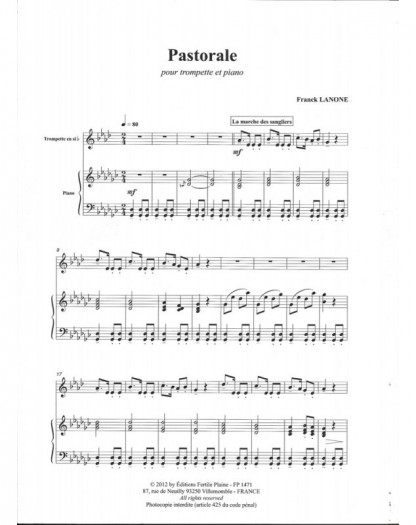 Pastorale Franck Lanone Basson et Piano Recueil + Partition