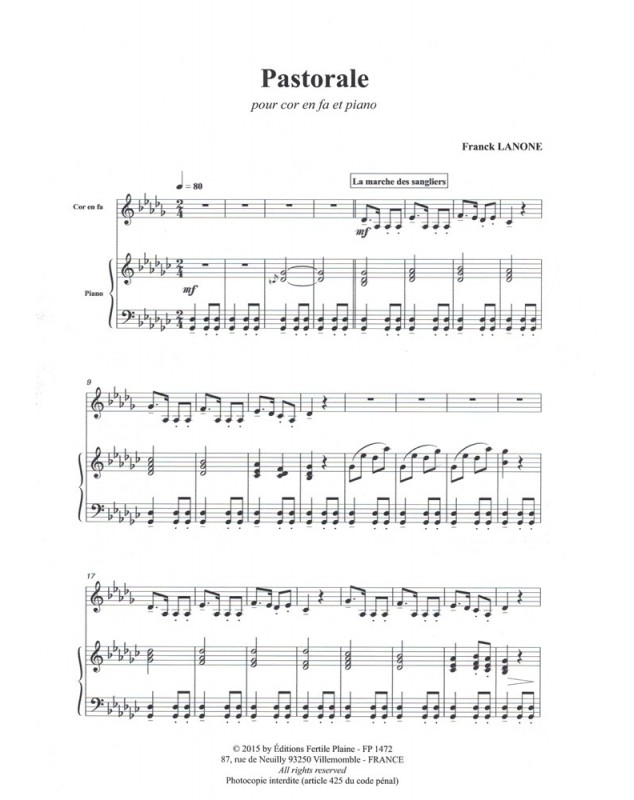 Pastorale Franck Lanone Cor et Piano Recueil + Partition