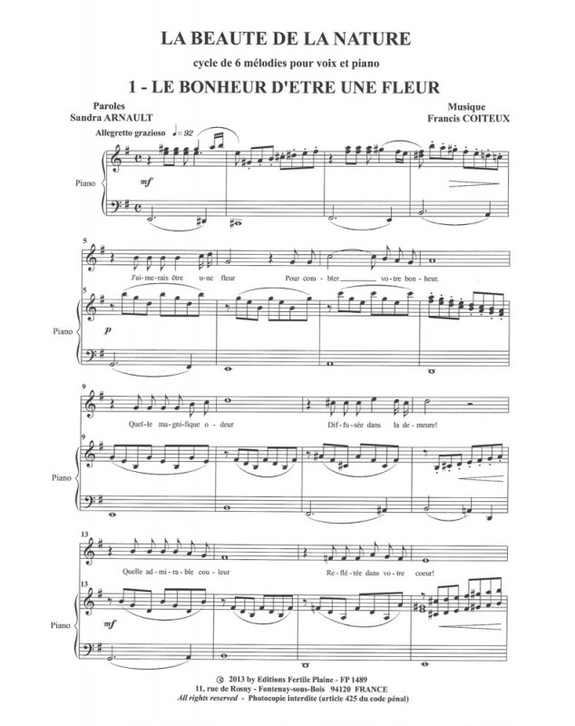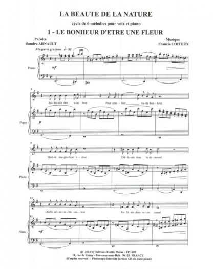 La Beauté De La Nature Le Bonheur D'Être Une Fleur Francis Coiteux Vocal Vocal Score