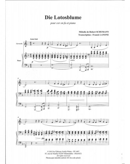 Lotosblume Robert Schumann Franck Lanone Cor et Piano Recueil + Partition
