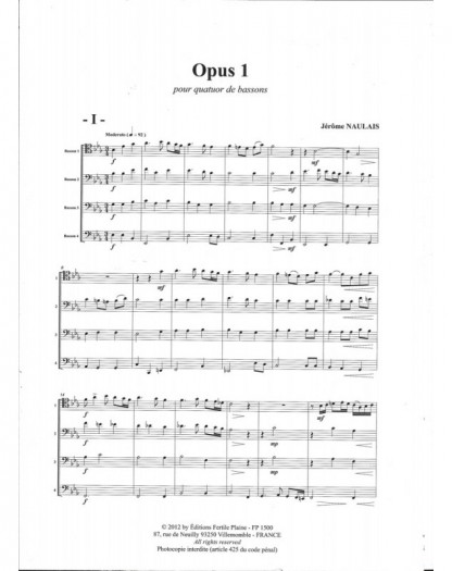 Opus 1 Jérôme Naulais 4 Bassoons Set de partitions