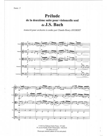 Prelude Johann Sebastian Bach Claude-Henry Joubert Orchestre à Cordes Score + Parties