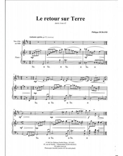 Le Retour Sur Terre Philippe Durand Saxophone Alto et Piano Recueil + Partition