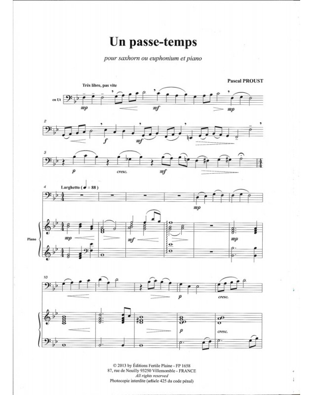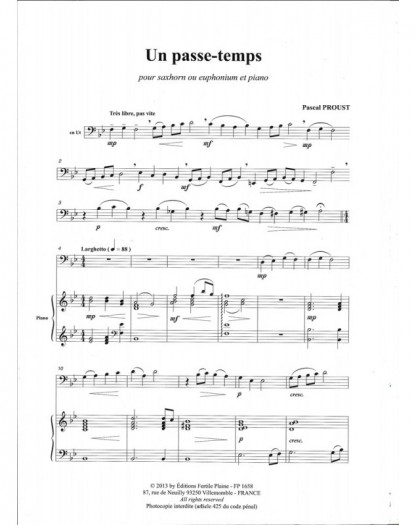 Passe-Temps Pascal Proust Saxhorn and Piano Recueil + Partition