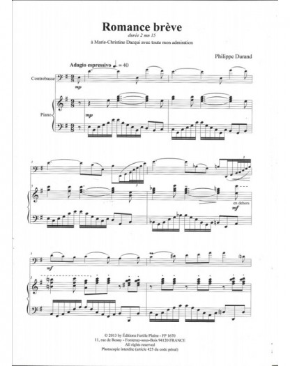 Romance Brève Philippe Durand Double Bass and Piano Recueil + Partition