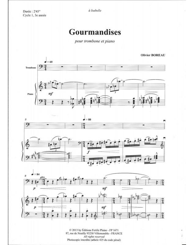 Gourmandises Olivier Boreau Trombone et Piano Recueil + Partition