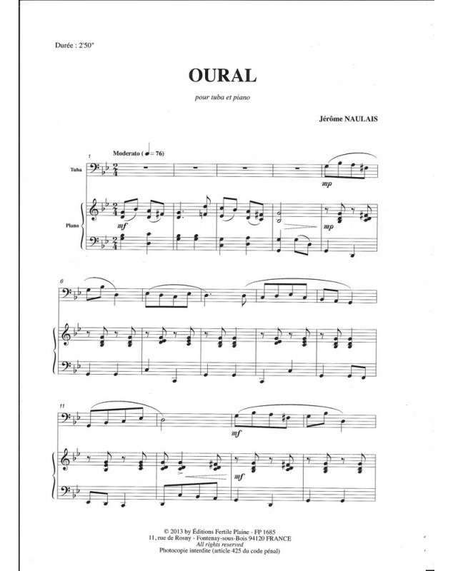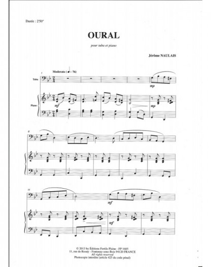 Oural Jérôme Naulais Tuba et Piano Recueil + Partition