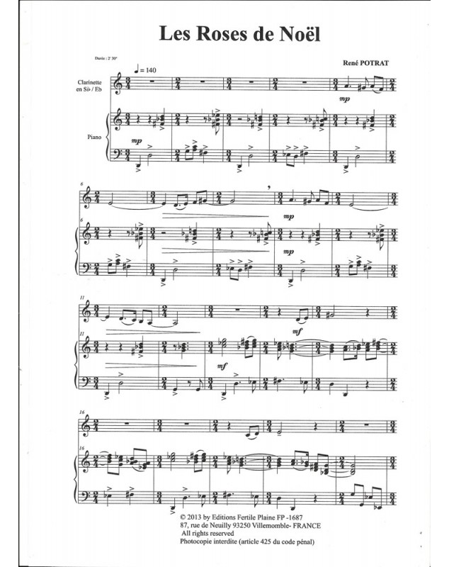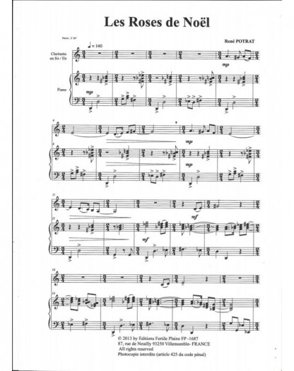 Les Roses De Noël René Potrat Clarinette et Piano Recueil + Partition