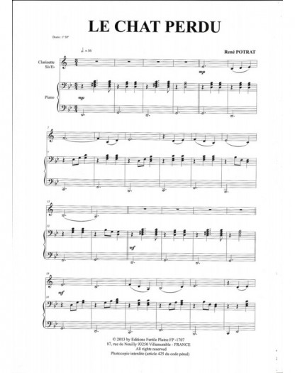 Le Chat Perdu René Potrat Clarinette et Piano Recueil + Partition