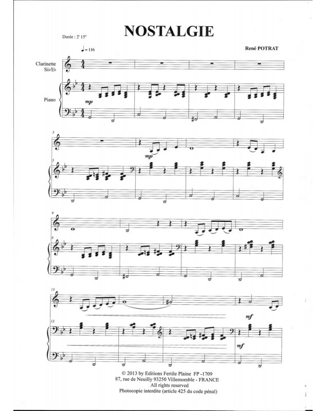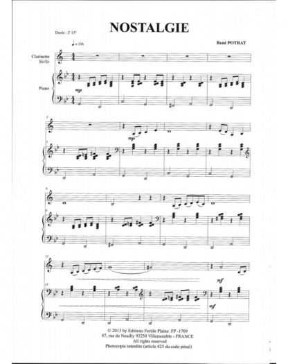 Nostalgie René Potrat Clarinette et Piano Recueil + Partition