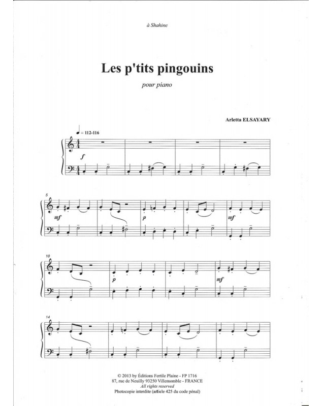 Les P'tits Pingouins Arletta Elsayary Piano Recueil