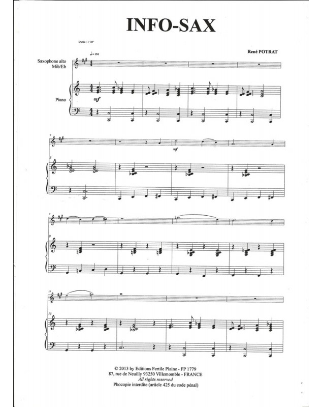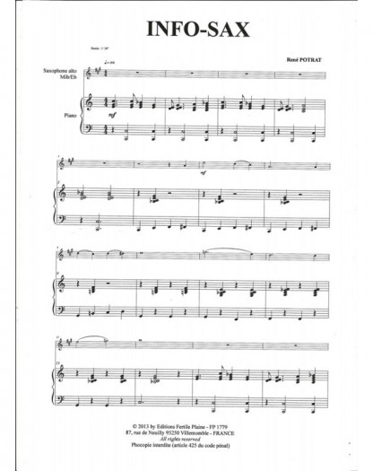 Info-Sax René Potrat Saxophone et Piano Recueil + Partition