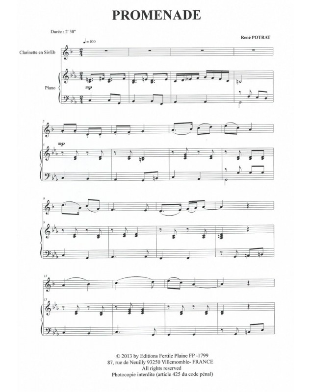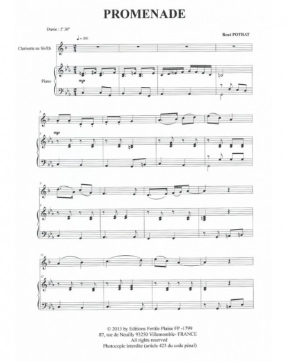Promenades René Potrat Clarinette et Piano Recueil + Partition