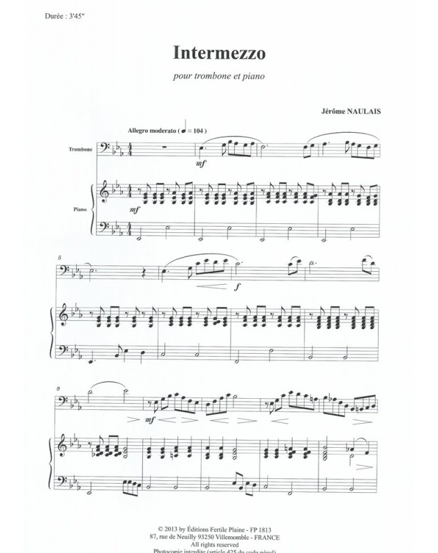 Intermezzo Jérôme Naulais Trombone et Piano Recueil + Partition