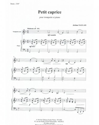 Petit Caprice Jérôme Naulais Trompette et Piano Recueil + Partition